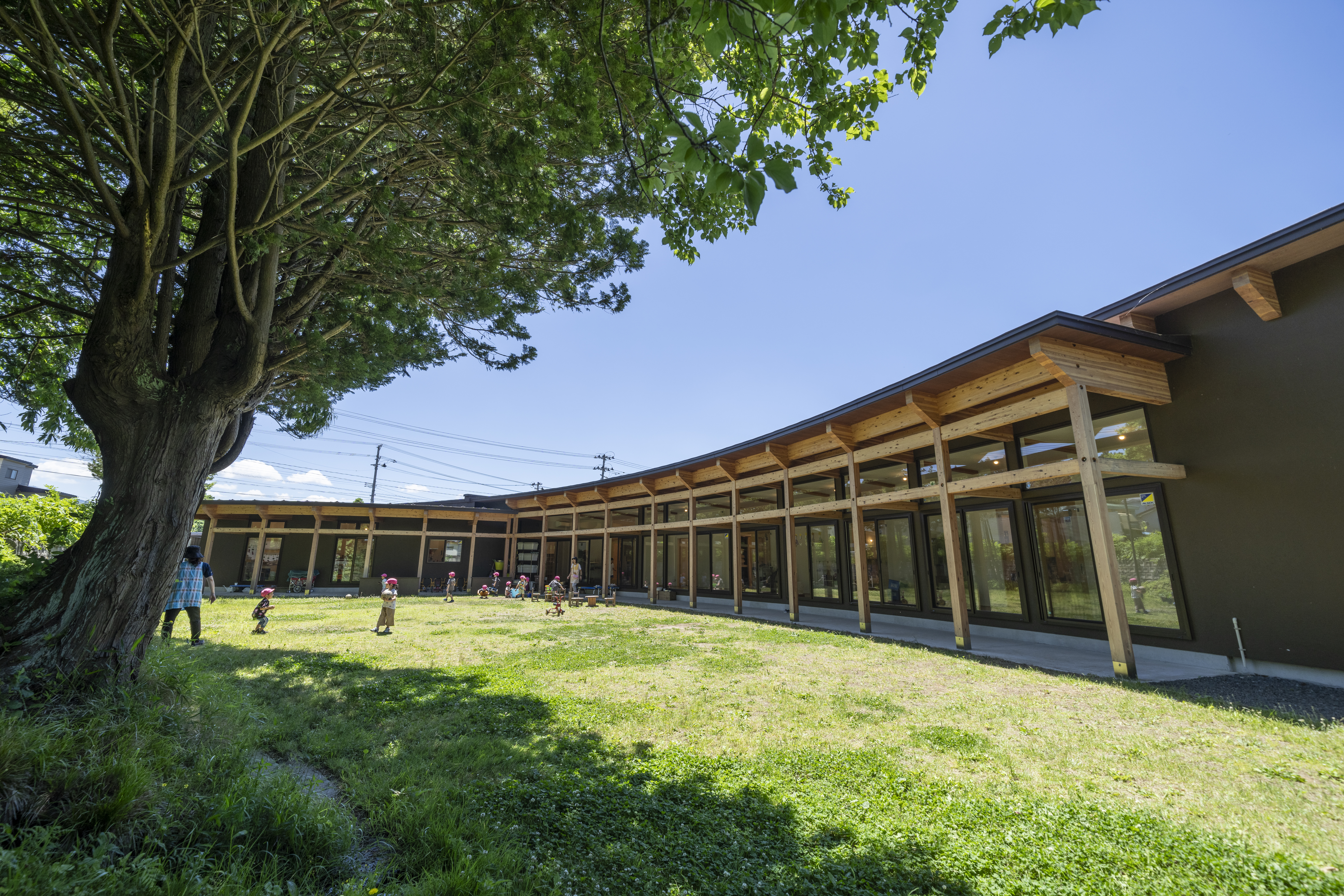 円弧の形状を提案、管理室からほぼ保育室と園庭が一望できる。